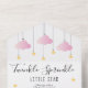Invitación de baby sprinkle de estrellita brillante que presenta nubes rosadas y estrellas doradas en cuerdas sobre un fondo blanco, esta invitación de baby sprinkle es perfecta para todos los pequeños que están en camino. Agregue los detalles de su celebración especial para crear la invitación perfecta. Incluye una solicitud de libro, rifa de pañales o cualquier otra tarjeta de solicitud de baby sprinkle. Diseñado por Thisisnotme©