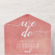 "Lo hacemos" elegante boda de caligrafía de estilo manuscrito de guijarros rosados y cursivos blancos, todo ello en una sola invitación.