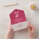Invitación Todo En Uno "Lo hacemos" viva magenta script calligraphy boda