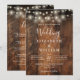 Esta invitación de boda con luces de cadena de madera de granero rústico todo en uno se puede personalizar con su información en tipografía moderna y detalles de la boda en el reverso. Diseñado por Thisisnotme