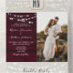 Invitación Todo En Uno Luces de Cuerda Rústicas para Boda Burgundy