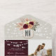 Abraza la elegancia rústica y la sofisticación moderna con nuestra invitación de boda de madera de granero borgoña todo en uno. Este encantador diseño presenta un rico fondo de madera borgoña, adornado con delicadas flores de acuarela en un frasco de Mason, una elegante monograma y el cálido resplandor de luces de cadena caprichosas. La mezcla perfecta de encanto rústico y estilo contemporáneo, captura bellamente la esencia de su día especial.