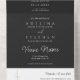 Una elegante invitación de boda que incluye hermosas luces de hadas, sobre un fondo blanco elegante negro y blanco. La tarjeta también incluye opciones de elección de comida para que los invitados seleccionen, y tu invitado puede escanear el código para responder, o enviar la tarjeta por correo regular. Perfecta para una boda elegante con un estilo minimalista. Sigue las instrucciones para personalizar la invitación con los detalles de tu boda. Prepara con anticipación la redacción en un documento separado, y copia y pega la información (cada cuadro de texto tiene su propio número visible en el formulario de edición, para que puedas organizar fácilmente tu información.