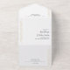 Las invitaciones Todo en uno son la manera más fácil y bella de combinar una invitación personalizada preciosa con una postal RSVP separable y autoperforada. ¡Así de sencillo! Simplemente se tiene que doblar, sellar con las pegatinas transparentes incluidas, y listas para enviar. En cuanto tus invitados reciban su invitación personalizada, solo tendrán que separar la postal por la línea autoperforada y mandártela de vuelta.