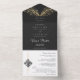 Invitación Todo En Uno Luces de Hadas Elegantes Negro y Código QR Dorado