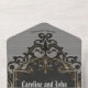 El lujo y el romance. Un marco dorado negro y plateado muy bien diseñado adornado con delicadas decoraciones de fibra. Estos bonitos detalles le dan al diseño un toque opulento y envuelven al espectador con una sensación de alegría festiva. Dentro de este marco mágico, una mujer se revela con un impresionante vestido boda. El diseño exuda un aura de exclusividad y calidez