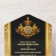 Una hermosa y majestuosa invitación a todo en uno, con un lujoso escudo real coronado por una corona que tiene elefantes indios de oro a ambos lados, enmarcado por una cubierta negra bordeada de oro falso y un exuberante damasco vibrante telón de fondo. Las plantillas de texto en blanco para la redacción personalizado aparecen en ambos lados. La tercera parte inferior tiene una tarjeta de respuesta desgarradora con dirección rsvp personalizada para que sus invitados completen más los mismos elefantes regales en círculo negro con dorado en el mismo damasco dorado. Son ideales para bodas, compromisos, aniversarios, duchas de novias y fiestas de cumpleaños de hindi, hindú, sanatani dharma y bodas asiáticos étnicos. Simplemente cambie la redacción para adaptarla a su evento o ocasión especial.