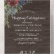 Las invitaciones a esta Boda Rústica Oscura cuentan con una exuberante vegetación, ricos rosas burdeos oscuros y flores azul marino sobre un fondo de madera oscura. Ideal para un boda rústico. En una sola invitación se incluye la información del boda y la postal RSVP que sus invitados envían y despegan. ¡Disfrútalo!