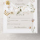 TAMBIÉN DISPONE DE UN CÓDIGO QR PARA ESCAPAR EN LA ZONA DE RSVP O CON OPCIONES PARA CENAR. Este diseño presenta un marco de flores silvestres blandas alrededor de un óvalo crema sobre un fondo blanco. Las invitaciones todo en uno personalizadas son una combinación única de una invitación personalizado bien impresa y una postal RSVP fácil de desgarrar. ¡Y son tan fáciles de usar! Simplemente se pliega, después sella la solapa de atrás con los tres pegatinas claros incluidos y el correo. Y cuando sus invitados reciben la invitación de su personalizado, ¡simplemente sacan la tarjeta RSVP perforada y la envían de vuelta al correo!