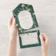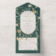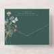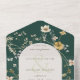 TAMBIÉN DISPONE DE UN CÓDIGO QR, CON DOS CENAS O SIN OPCIONES PARA CENAR. Este diseño presenta un marco de flores silvestres blandas alrededor de un óvalo crema sobre un fondo verde esmeralda. Las invitaciones todo en uno personalizadas son una combinación única de una invitación personalizado bien impresa y una postal RSVP fácil de desgarrar. ¡Y son tan fáciles de usar! Simplemente se pliega, después sella la solapa de atrás con los tres pegatinas claros incluidos y el correo. Y cuando sus invitados reciben la invitación de su personalizado, ¡simplemente sacan la tarjeta RSVP perforada y la envían de vuelta al correo!