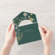 TAMBIÉN DISPONE DE UN CÓDIGO QR, CON DOS CENAS O SIN OPCIONES PARA CENAR. Este diseño presenta un marco de flores silvestres blandas alrededor de un óvalo crema sobre un fondo verde esmeralda. Las invitaciones todo en uno personalizadas son una combinación única de una invitación personalizado bien impresa y una postal RSVP fácil de desgarrar. ¡Y son tan fáciles de usar! Simplemente se pliega, después sella la solapa de atrás con los tres pegatinas claros incluidos y el correo. Y cuando sus invitados reciben la invitación de su personalizado, ¡simplemente sacan la tarjeta RSVP perforada y la envían de vuelta al correo!