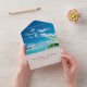 Invitación Todo En Uno Marea turquesa Tropical Palm Tree Beach Wedding