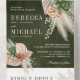 Aprovecha tus invitados con esta elegante invitación de bodas con hermosas flores y rústico pasto de pampas con una desmontable postal RSVP. Simplemente agregue los detalles de su evento en esta plantilla fácil de usar para convertirla en una invitación única.
