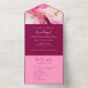 Todo esto en una tarjeta de invitación a la boda es especial. Obtienes tu tarjeta de invitación y la tarjeta RSVP todo en uno. Puedes personalizar la romántica y elegante carta de invitación a la boda con tu Intro, nombres, ocasión, fecha, dirección, rsvp, comidas y otros colores de fondo a tus preferencias. Incluso la imagen es cambiable. La combinación de tonos rosa y burdeos es armoniosa, con una tipografía en blanco y borgoña. Se trata de un remolino de mármol de tonos rosa, blanco y burdeos. Puedes sellar con elegancia y mandar esta invitación tridoblada a una boda económica. Enviar la tarjeta postal RSVP de vuelta al remitente. Haz que este diseño especial sea tuyo y sientas como el príncipe y la princesa en tu futuro boda. Hobinishop
