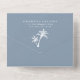 Esta polvorienta invitación a bodas con temática tropical de playa azul con el desgarrador RSVP tiene un diseño minimalista sencillo con dos palmeras en la parte superior y un elegante texto clásico. Consulte la colección de la suite de invitados de boda coincidente y más productos coincidentes.