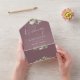 Todo ello en una invitación a la boda con hojas rústicas de vegetación botánica, y tipografía elegante sobre fondo malva. La invitación incluye una tarjeta RSVP perforada con un código QR. Diseñado por Thisisnotme©