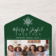 Moderno invierno rústico 4 fotos de familia personalizado Merry y Joyful juntos guiñan tarjeta triple de vacaciones con copos de nieve. +++++++++++++++++++ Fácil de personalizar con sus imágenes, secuencias de comandos de texto, nombre de familia y su texto en ambos lados!