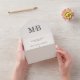 This minimalist elopement invitation features a clean editorial layout, soft neutral tones, and a timeless monogram detail for a refined, understated look.