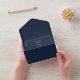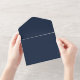 This minimalist navy blue, gold and white invitation is simply elegant. White script typography is accented by a delicate gold frame. This minimal design is perfect for your traditional or modern wedding day