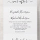 Un boda minimalista y moderno, todo en una sola invitación. "Feliz eterno después" está escrito en la parte superior interior de la tarjeta en una mezcla de tipografía simple y un guión elegante con guiones. Personaliza tu invitación en escritura simple y tipografía. Una tarjeta postal RSVP desgarradora proporciona una respuesta cómoda, ecológica y sin sobres de sus invitados.