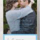Moderno boda, todo en una sola invitación que incluye los detalles de tu evento sobre tu foto vertical favorita con las palabras "la celebración boda de" en un guión elegante.