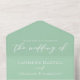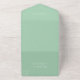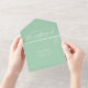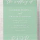 Este suave boda verde menta, todo en una sola invitación, incluye un guión blanco de moda para una ceremonia al aire libre de primavera dulce y una tarjeta RSVP desmontable. Una tipografía sencilla sobre un verde pastel tranquilo invita a un jardín.