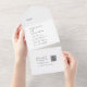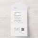 Este moderno boda de monograma QR blanco y negro de moda, todo en una sola invitación, es perfecto para un boda simple. El minimalista diseño boho presenta una tipografía bohemia rústica única y elegante en blanco y negro minimalista. Escriba a mano las direcciones de los invitados en la parte posterior de la invitación plegada o compre pegatinas coordinados de etiquetas de direcciones de invitados (se venden por separado). Incluya un código QR para que sus huéspedes puedan acceder a RSVP en línea.