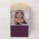 Sumérjase en el espíritu vibrante de su historia de amor con nuestra moderna invitación casera rústica de inspiración bohemia. Con un romántico corazón de cuerda dorada y brillantes luces de cuerda en un contexto colorido, irradia encanto y sofisticación. Personalízalo con cuatro fotos encantadoras que capturan tu viaje juntos, e incluya tu sitio web boda y código QR para confirmaciones de asistencia técnica sin esfuerzo. Es una elegante fusión de estilo bohemio y comodidad moderna, invitando a sus seres queridos a compartir la magia de su día especial.