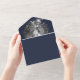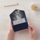 Invitación Todo En Uno Modern Brushstroke Photo Wedding | Navy Blue