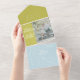 Invitación Todo En Uno Modern Script Chartreuse and Blue Wedding
