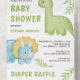 Sorprenda a sus huéspedes con esta moderna ducha de bebé, que incluye lindos dinosaurios con tarjeta de raffile de pañales desmontable. Simplemente agregue los detalles de su evento en esta plantilla fácil de usar para convertirla en una invitación única.