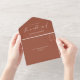 Invitación Todo En Uno Moderna caligrafía Boda de terracota sólida
