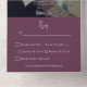 DISPONIBLE CON O SIN CÓDIGO QR PARA ESCAPAR EN LA ZONA RSVP O CON O SIN OPCIONES PARA CENAR. Este diseño es sencillo pero elegante, con la última inicial del novio o la novia en la solapa exterior. Un overlay negro transparente cubre la foto que añades. El fondo y la espalda son un bello borgoña. También agregue un código QR personalizado a su invitación para que los visitantes puedan acceder rápidamente a su sitio Web boda para obtener detalles, direcciones, opciones de menú y más, o agregar la dirección URL Web del Registro de regalos. Las invitaciones todo en uno personalizadas son una combinación única de una invitación personalizado bien impresa y una postal RSVP fácil de desgarrar. ¡Y son tan fáciles de usar! Simplemente se pliega, después sella la solapa de atrás con los tres pegatinas claros incluidos y el correo. Y cuando sus invitados reciben la invitación de su personalizado, ¡simplemente sacan la tarjeta RSVP perforada y la envían de vuelta al correo!