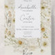 DISPONIBLE CON CÓDIGO QR O CON O SIN OPCIONES DE SELECCIÓN DE CENAS. Celebre su historia de amor con una combinación perfecta de encanto rústico y elegancia moderna con nuestra exquisita invitación a la boda. La invitación, elaborada con meticulosa atención a los detalles, presenta un marco floral de margaritas secas de acuarela y hierbas de campo en suaves amarillos, cremas y verduras de salvia, creando un entorno cautivador que capta la esencia de la belleza rústica. Con un fondo de crema suave, un inmaculado cuadro de texto blanco adornado con fuentes gratuitas modernas añade un toque de sofisticación, marcando el equilibrio perfecto entre tradición y estilo contemporáneo. Esta invitación promete marcar la pauta para una celebración boda que es a la vez atemporal y única, donde elementos rústicos concuerdan con el diseño moderno para una experiencia inolvidable. Creado por Simply Farmhouse Press.