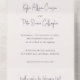 Elegante boda todo en una invitación con un diseño sencillo y clásico con sus nombres en un guión moderno y sus detalles del evento en una combinación de tipografías tradicionales serif y cursiva.