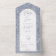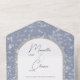 TAMBIÉN DISPONIBLE CON UN CÓDIGO QR PARA ESCAPAR EN LA ZONA RSVP O SIN OPCIONES PARA CENAR. Este sencillo pero elegante diseño de invitación a la boda presenta un hermoso fondo azul polvoriento con copos de nieve blancos que caen suavemente. El texto se muestra en un área de texto blanco abovedada sobre un falso arco de purpurina plateado para chispa de invierno adicional. Creado por Simply Farmhouse Press.
