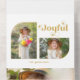 Diseño vacacional sencillo, limpio y moderno basado en tipografía, con un saludo personalizado "alegre" con un diseño decorativo fresco con una plantilla de medio arco única para acomodar dos fotos. El color del texto gráfico es personalizable (el oro se usó en la previsualización).