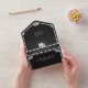 ¡Tu invitación completa en una hermosa tarjeta! Esta invitación a la boda todo en uno infunde encanto Art Decó con un toque moderno. Con Elegancia Clásica contra un fondo negro onyx, adornado con un bonito cisne blanco y un patrón geométrico, esta carta simplifica la elegancia para su día especial.