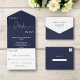 Invitación Todo En Uno Moderno Boda de Moda elegante azul de la Marina