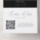 Elegante invitación de boda todo en uno con tu foto de compromiso en la parte superior del diseño. Sus nombres y detalles del boda se muestran en texto blanco con acentos modernos de caligrafía en un fondo negro. El diseño incluye un código QR para que los huéspedes puedan ver los detalles del boda en línea en el sitio web de su boda. Diseñado para coordinar con nuestra colección de bodas Modern Elegance.