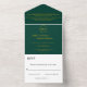 Invitación Todo En Uno Moderno Boda simple de monograma de oro verde esme