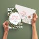 El follaje mínimo moderno fue de un año para recordar la tarjeta de Navidades de vacaciones guionada. El eucalipto pintado a mano, el follaje mínimo y la moderna corona rústica de mimbre le dan a esta tarjeta un ambiente lujoso. En verdes, marrones y grises elegantes.