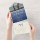 Invitación Todo En Uno Moderno Ocean Blue Wave Stripes Beach Wedding Phot