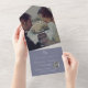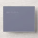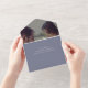DISPONIBLE CON O SIN CÓDIGO QR PARA ESCAPAR EN LA ZONA RSVP O CON O SIN OPCIONES PARA CENAR. Este diseño es sencillo pero elegante, con la última inicial del novio o la novia en la solapa exterior. Un overlay negro transparente cubre la foto que añades. El fondo y el fondo son un bello perwinkle polvoriento. También agregue un código QR personalizado a su invitación para que los visitantes puedan acceder rápidamente a su sitio Web boda para obtener detalles, direcciones, opciones de menú y más, o agregar la dirección URL Web del Registro de regalos. Las invitaciones todo en uno personalizadas son una combinación única de una invitación personalizado bien impresa y una postal RSVP fácil de desgarrar. ¡Y son tan fáciles de usar! Simplemente se pliega, después sella la solapa de atrás con los tres pegatinas claros incluidos y el correo. Y cuando sus invitados reciben la invitación de su personalizado, ¡simplemente sacan la tarjeta RSVP perforada y la envían de vuelta al correo!