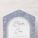 TAMBIÉN DISPONIBLE CON UN CÓDIGO QR PARA ESCAPAR EN LA ZONA RSVP O SIN OPCIONES PARA CENAR. Este sencillo pero elegante diseño de invitación a la boda presenta un hermoso fondo azul polvoriento con copos de nieve blancos que caen suavemente. El texto se muestra en un área de texto blanco abovedada sobre un arco falso de Relieve metalizado plateado para chispa de invierno adicional. Creado por Simply Farmhouse Press.