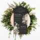 Boda económico moderno de pampas rústicas negras de eucalipto todo en una invitación de código QR, tarjeta de respuesta con espacio para código qr e información del sitio web.