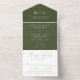 Invitación Todo En Uno Moderno y elegante Boda verde oliva monograma