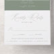 Invitación Todo En Uno Moderno y elegante Monograma Sage Green Boda