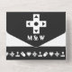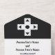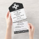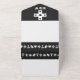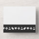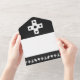 Trae un toque de diversión geeky a tu evento con esta invitación de boda todo en uno y tarjeta RSVP. En el interior encontrará un D-pad blanco sobre un fondo negro profundo encima de una sección con un texto de ejemplo que se puede personalizar para su día especial. La sección inferior de la invitación incluye una pieza extraíble del tamaño de una postal que tiene un ejemplo de texto RSVP sentado sobre un borde negro anónimo con un patrón de joysticks, ratones de computadora, D-pads y corazones de 8 bits esparcidos por la parte inferior. En el exterior, se puede encontrar un borde similar de símbolos con temas de videojuegos en negro debajo de las áreas donde se agregarían sellos, parámetros y direcciones de retorno tanto para la invitación como para la sección RSVP que se puede devolver. La solapa utilizada para doblar y sellar la tarjeta tiene un solo D-pad en un fondo de ónice profundo con un conjunto de iniciales de muestra que puedes personalizar para un toque personal final que muestra tu amor por el juego y entre ellos. Asegúrese de comprobar el resto del juego de modo multijugador en negro para otros productos de coordinación, incluyendo etiquetas de dirección de retorno.