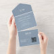 Invitación Todo En Uno Monograma azul turbio moderno código QR Boda RSVP